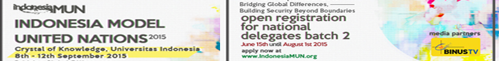 HomeAdsThe 6th Annual of Indonesia Model United Nations 2015 The 6th Annual of Indonesia Model United Nations 2015 29 Jul 2015 Share to your friends